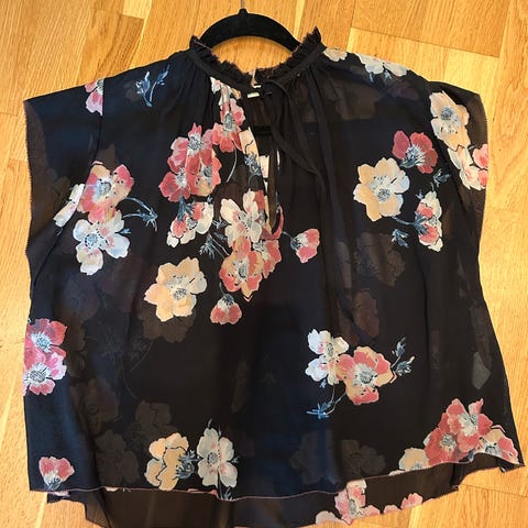 Brukt en gang, ingen synlige skader. Knehøyde foran og midt på leggen bak, med en sløyf i livet back. Str.38.
