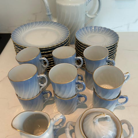 Porsgrund Kaffeservise Bogstad maud blå med gullkant