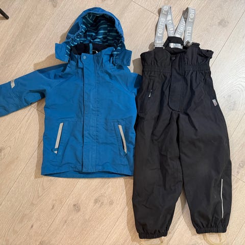 Selger Vinter jakke og vinterbukse med seler. Jakken har forsterkede parti på albuer og buksen har forsterket parti på bakenn og knær.