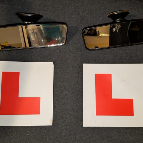 speil og en kjøreskolebok