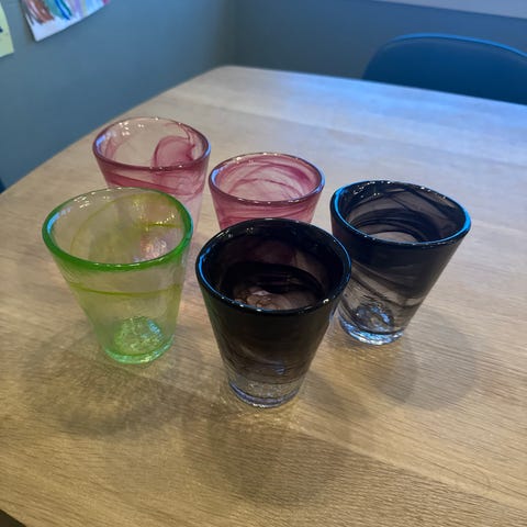 Selger et snapsglass fra den utgåtte Hearts kolleksjonen til Kosta Boda. Design Ulrica Hydman Vallien. Glasset har signatur fra designer og er merket med «Kosta Boda Art Coll Ulrica HV 99551.» Ikke brukt, kun stått til pynt.