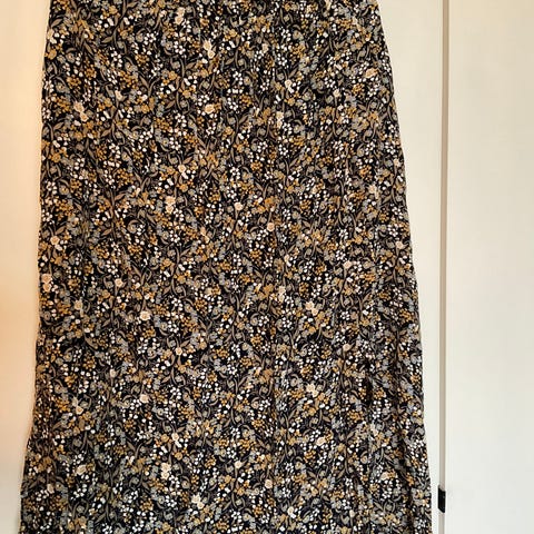 Middels lang kjole i vid modell frå Yas med prikkete mønster. Stoffet er polyester. Kjolen er brukt eit par gonger, og framstår som ny.