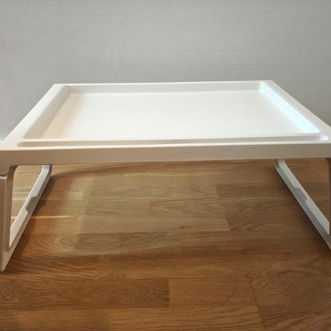 Selger pent brukt sengebord fra IKEA for kr 50. Sammenleggbart. En liten låse knott er knett men kan fint brukes allikevel. Hovedløsningen er ok på begge føtter. Tåler ikke 5 kg men en pc går fint.😊