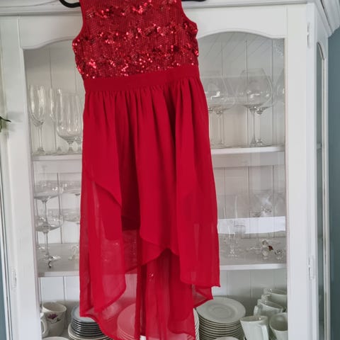 Nydelig penkjole fra creami i str 134. Den har små blomster på seg. Kjolen er bærfarget -altså ikke så rød som det fremstår på bildene. Siste bildene er mest riktig på fargen. Vi brukte denne som julekjole. Kun brukt et par ganger.