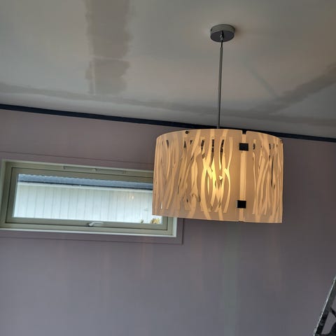 Har en mindre bulk som var der da vi kjøpte den. Synes ikke når den henger oppe da den vender mot taket.
