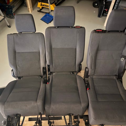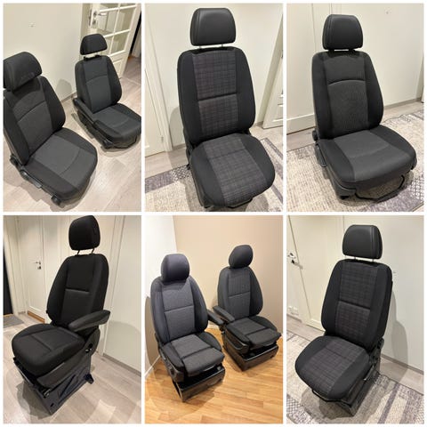 Selger ubrukte originale sjåfør og passasjerseter med understell til Vw Caravelle/Multivan/Transporte, passer til biler mellom 2005 - 2024.