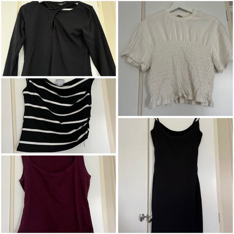 Klespakke med klær fra forskjellige merker.
