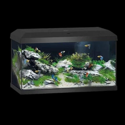 Akvarium med utstyr og dekorasjoner good stand og er vasket og klar til bruk