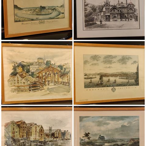 3 stk STORE Trondheims tegninger/bilder 52x62