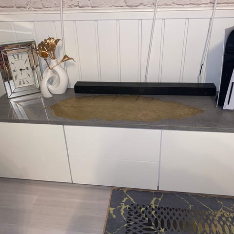 Stereo benk med 2 hyller og topp.