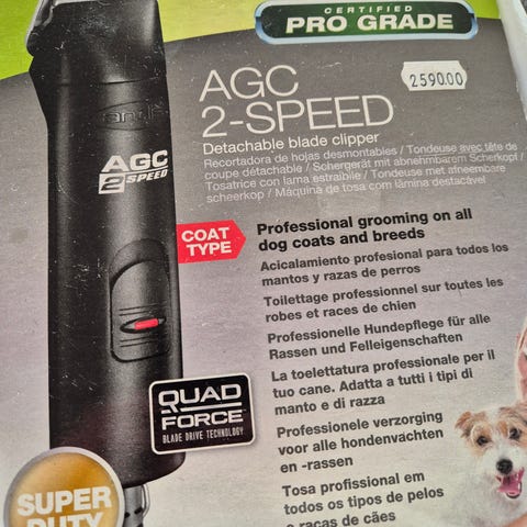 Klippemaskinen er brukt til en hund( Welsh springer spaniel) til klipp 4-6 ganger i året. Maskinene er nok 10 år. Ett skjær følger med.