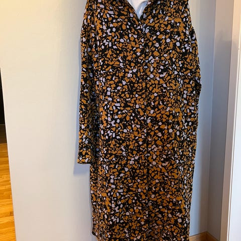 Har selv kjøpt denne brukt og tidligere eier har dessverre klippet av lappen med størrelsen. Jeg har kjøpt den som en str M. Se bilder for mål.