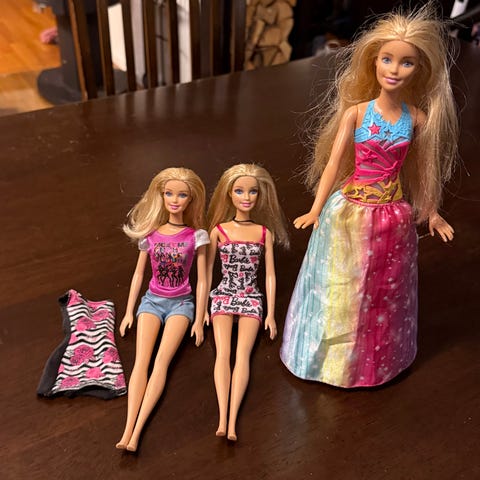 Barbie dukker og en My scene gutt. Klassisk design med bevegelige ledd, egnet for lek og samling. Perfekt for barn som liker å skape fantasifulle historier.
