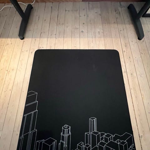 Selger en helt ny og uåpnet gulvmatte til kontorstoler. Produktet beskytter gulvet mot riper og skader. Det er en Arozzi Zona Quatro gulvmatte (Sort/Grå).