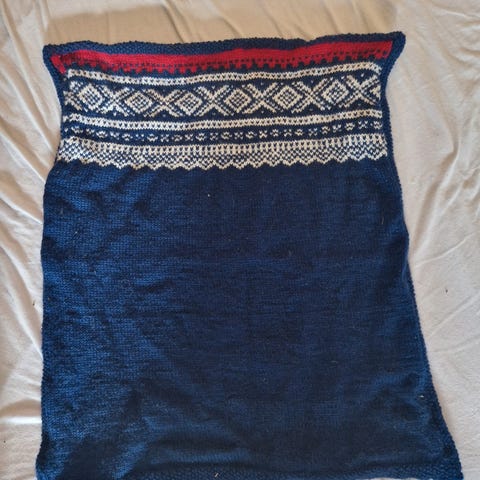 Den er vasket og klar til brukt. Det har loet litt på trekket.