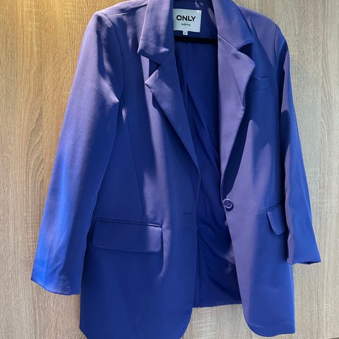 Selger en elegant lyseblå Silvian Heach suit sett, bestående av en klassisk blazer med slag og matchende bukser. Dressen er ny, ubrukt men uten lap. og er i størrelse 42 italiensk (38 europe). Perfekt for både formelle og uformelle anledninger.