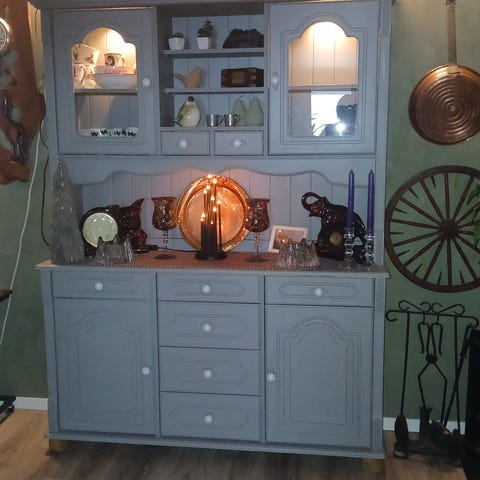 Selger ett av mine prosjekt pga tidsklemma. Hjørneskapet er egentlig syrelutet furu, heltre, og malt sort. Trenger litt kjærlighet og litt mer maling.