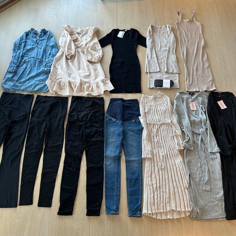 Selger stor pakke med gravidklær. De fleste i størrelse Small men noe i M/L som passet mot slutten av graviditeten.