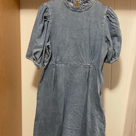Helt ny jeanskjole fra Tendency selges rimelig. Lappen henger fortsatt på. Str. L. Finner ikke noen størrelse med innhold, men tror denne må være 100 % bomull.