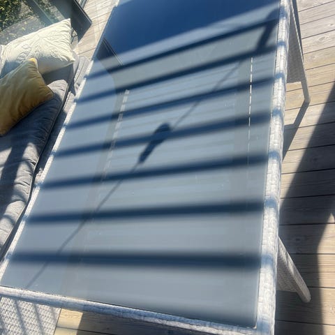Sort med solid glassplate.
