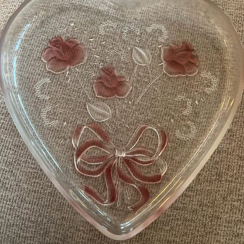 Flott Vintage glassfat/bolle på tre ben med graverte roser&mønster i en gyllen gul brun tone.