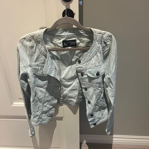 Pent brukt Armani Jeans innsvinget olajakke med lommer foran.