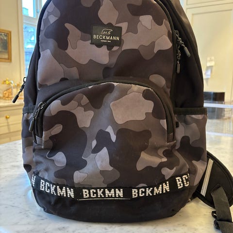Beckmann skolesekk 30 liter. Passer fra 3.klasse. Pent brukt, men noe synlig bruksmerker nederst på sekken- se bilde.