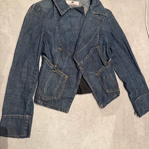 Selger denne kule jakke, i «washed-look» utseende. Den er i størrelse S. Nesten ikke brukt. Merket heter Miss Softy.