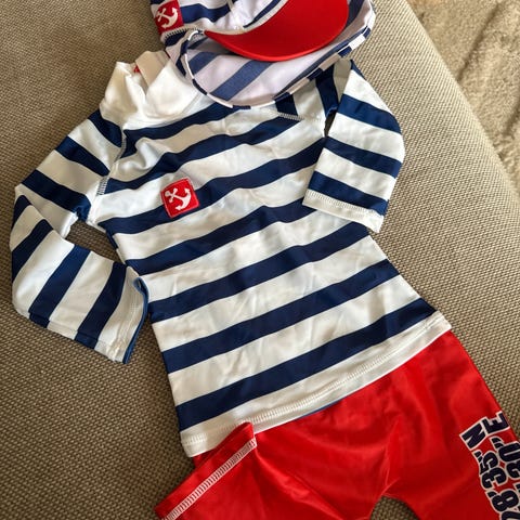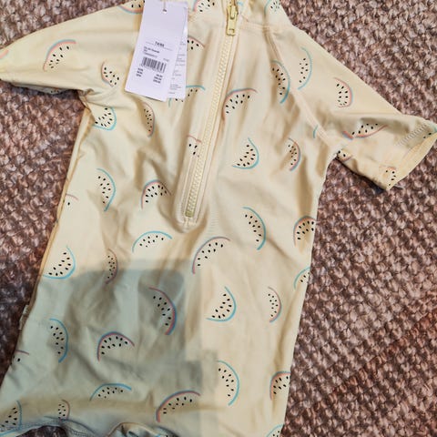 Ubrukt Swimpy UV-drakt med caps. Str 74/80.