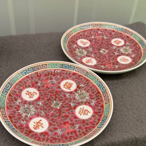 Bare en suppe skål har liten skade i sølv kanten, se bilder. Totalt 18 deler. 8 flate tallerkener, 8 skåler, 1 serveringsfat, 1 bolle .Selges samlet.