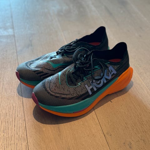Hoka Mach x2 løpesko selges. Veldig gode løpesko med karbonplate som er godt egnet til både rolige og raske økter.