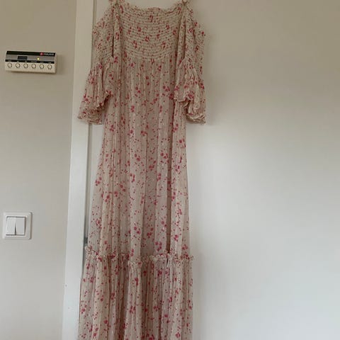 Lekker og sommerlig kjole fra ByTimo. Kan fint legges opp hvis den er for lang. Den har vært sydd opp på lengden før så litt merker etter det, men det syns ikke godt.