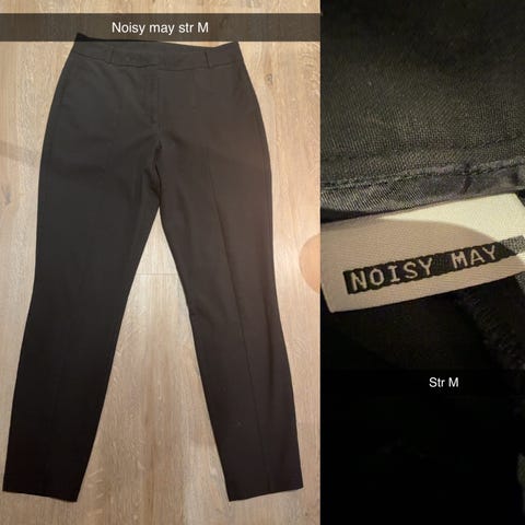 Noisy May bukse i svart farge m/innvevd små sølvtråder, Størrelse M. Laget av mykt og komfortabelt materiale, 2 stk skrålommer.Strikk i linningen og knyting.