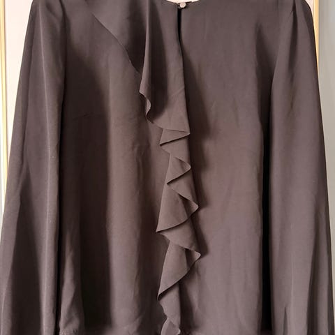 Lekker bluse fra Mango med fine detaljer. Knyting i halsen og pene volanger i front.