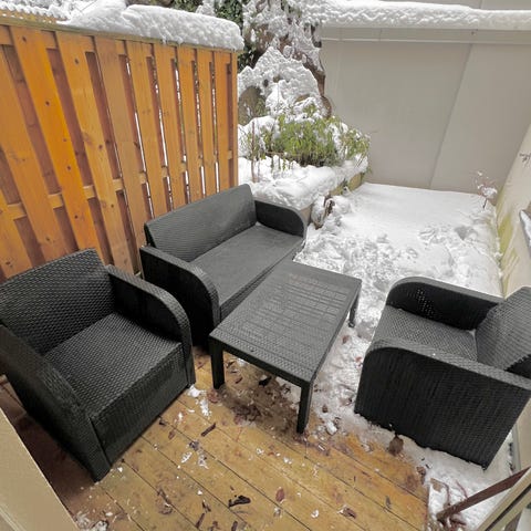 Godt bruka mågerø spisegruppe frå Skeidar. Sofa med 3 seter, 2 stolar og spisebord. Fungerer både til spising og som vanleg sittegruppe, sidan bordet er i mellomhøgde. Rottingen er slitt på nokre utsette stader (armlener etc) og på bordplata (se eige bilete - me har løyst problemet ved å bruke duk under glasplata for å skjule det). Sofa og stolane er behagelege å sitte i. Trekka på sitteputene (ikkje ryggputene) kan tas av og vaskast. Mykje bruk igjen! Må hentast på Røa.