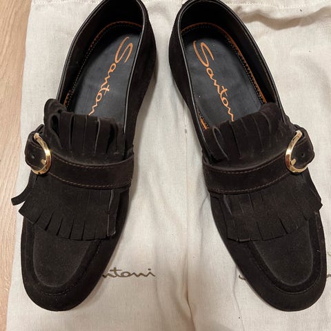Carmina loafers sued. Størrelse 7EE. Mannen min bruker størrelse 42,5 og de er litt trange, altså er det ca størrelse 42, 41.5.