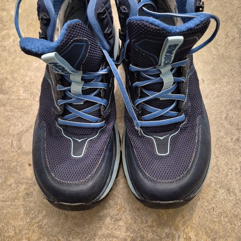 Pent brukt joggesko fra Asics, brukt til spaserturer. Marineblå i fargen.