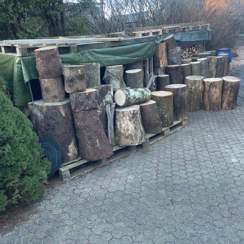 Flott og solid sage krakk i trykkimpregnert materiale selges.