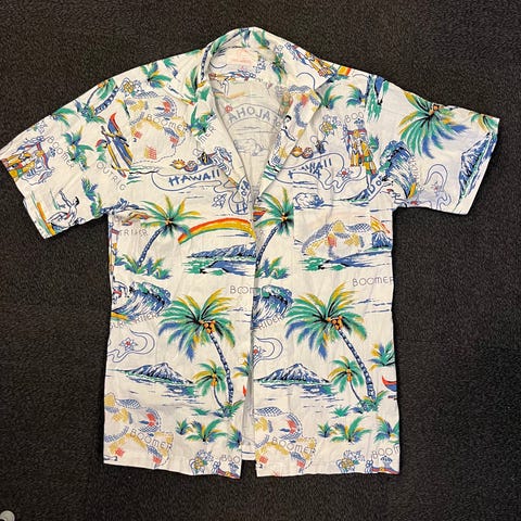 Superkul Hawaii-skjorte. Kjøpt på en liten butikk i Palma🌴65%lin og 35% Viskose. Myk og behagelig i stoffet. Blir dessverre bare hengende.