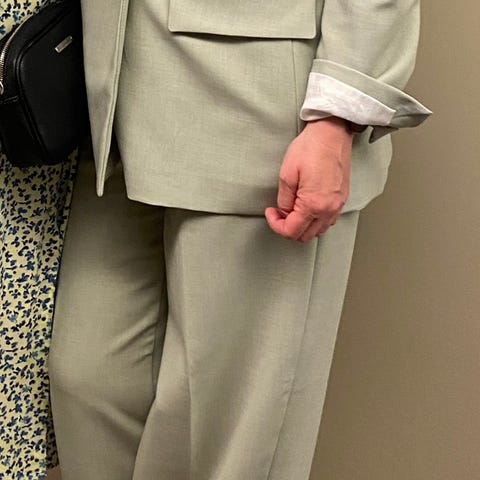Detaljer: Dressjakken har én knapp og et enkelt, stilrent design. Buksen har en rett passform.