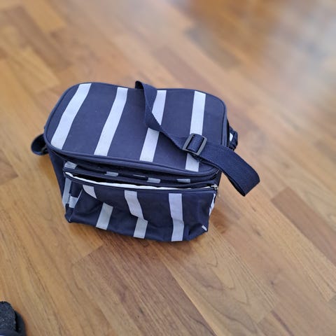Selger en kjølebag på følgende mål: B 19 cm L 28 cm H 25 cm. Jeg har to stk som selger for 100 kr pr stk.