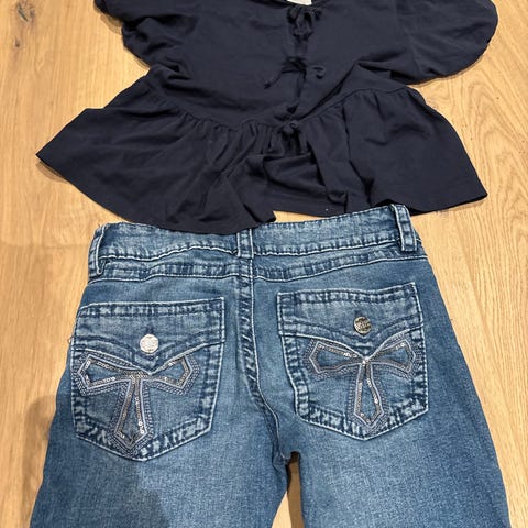 Kul jeans med regulering i midjen. Moderne. Søt kjole til hverdag & fest. Str 110