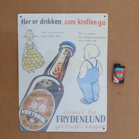 Flott skilt i papp. Selges 500kr + porto. Perfekt i krambua/landhandelen. Kan hentes i Haugesund etter avtale.