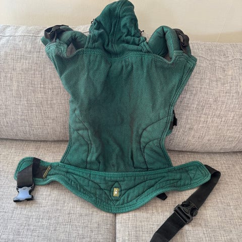 Selges pent brukt ergonomisk bæresele, bæreselen har en hette som støtter babyens hode mens den sover, den har en stor lomme hvor du kan legge mange ting, den er opptil 20 kg