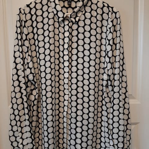 Mønstret bluse fra Barbara Lebek i lette og behagelige materialer. Løse ermer og knappestolpe i front. Nøytrale farger med innslag av rosa og grått gjør den enkel å kombinere med både bukser og skjørt.