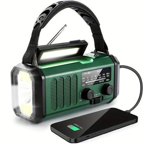 Kraftig og solid arbeids høytaler med AM/FM radio. Innebygd lampe/lys.