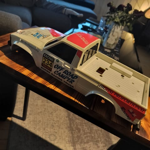 Volkswagen Caddy 1979. 1/10 190mm.helt Strøken og ubrukt. Front og bak fanger og lys grill til drifting følger med"Må lage hull til feste selv" til tamyia tt02, kyosho, yokomo, selges 800kr.