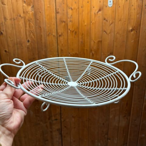 Pent og koselig hvitt serveringsfat:) Fatet er i stål og kan skrus fra hverandre.