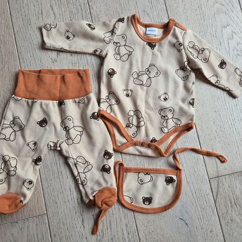 Sett fra Hust & Claire med body og bukse. Kun brukt to ganger og er som nytt. Nydelig mønster med ballong og elefant.