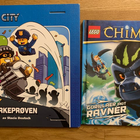 3 bøker fra Lego . De to med Emmet ( fra Lego filmene, er på engelsk. Lettleste og perfekte til å øve språket ). Nexo Knigt boken er på norsk, også den lettlest. Pent brukt